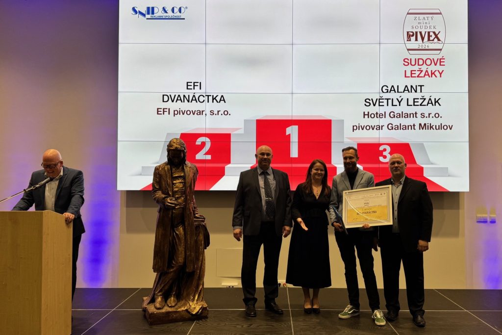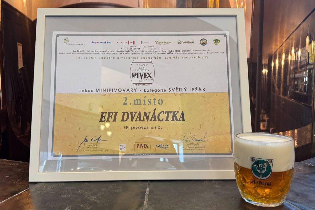 EFI Pivovar si připisuje další cenný úspěch. Na soutěži Zlatý soudek PIVEX 2026 získala EFI Dvanáctka 2. místo v sekci Minipivovary, v kategorii Světlý ležák. Ocenění převzal hlavní sládek EFI Pivovaru Zdeněk Zika.
